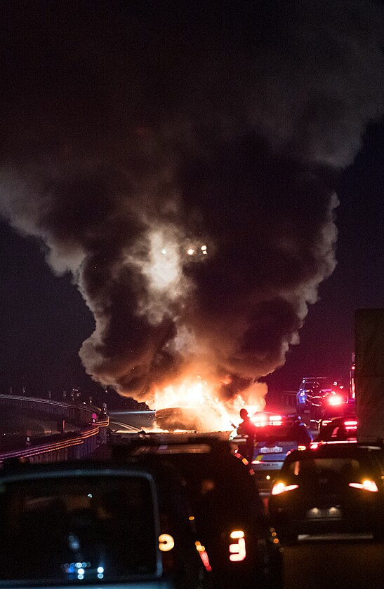 Požár osobního auta po nárazu do svodidel na D11 u Smiřic (26.11.2024).