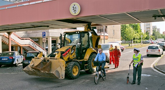 Řidič si zřejmě neuvědomil, že nad střechu vozidla vyčnívá rameno s radlicí a vjel pod rampu na okraji Benešovy třídy, která je ve výšce 330 centimetrů. Vozidlo přitom měří asi o dvacet centimetrů více.