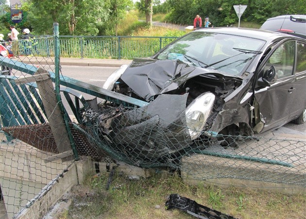 „Řidič se vyjádřil, že ve chvíli, kdy projížděl pravotočivou zatáčku, se sehnul pro brýle, které mu spadly na zem. Vyjel vlevo mimo silnici a předkem auta narazil nejprve do brány, podezdívky a oplocení u domu a poté do zábradlí mostku,“ popsala mluvčí hradecké policie Libuše Holá.