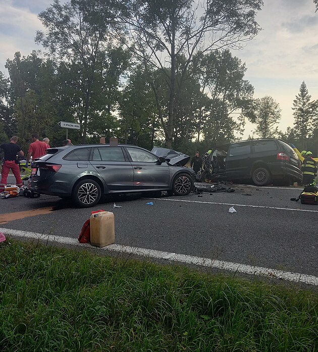 Tragickou dopravní nehodu dvou aut u Choustníkova Hradiště na Trutnovsku nepřežili čtyři lidé, na místě zasahovali hasiči. (9. září 2025)