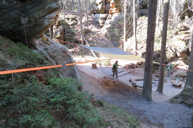 „Podle archeologa bývalo nějaké tábořiště v tomto místě vždycky, ale omezovalo se pouze na ohniště a pár konzerv v jeskyni. Toto ale bylo luxusní tábořiště. Cestou do skal byla na dně rokle vykopaná jímka na vodu, na prostranství vzniklo velké ohniště s rošty a čtyřmi lavičkami,“ popsal zástupce vedoucí Správy CHKO Broumovsko Petr Kuna.