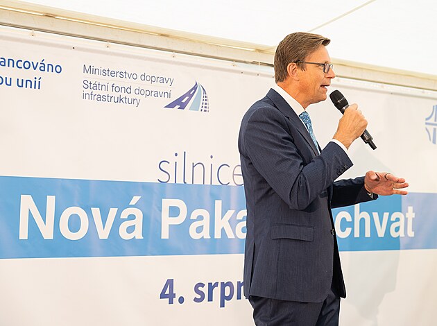 Ministr dopravy Martin Kupka na slavnostním otevření obchvatu Nové Paky (4. srpna 2025)