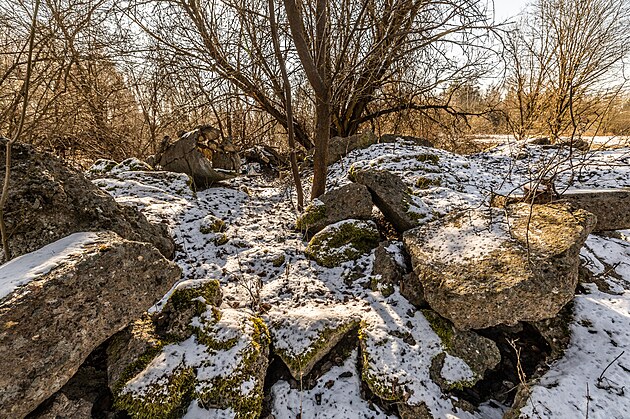 Zbytky panelů a stavebního odpadu v přírodní památce Na Plachtě v Hradci Králové (březen 2025).