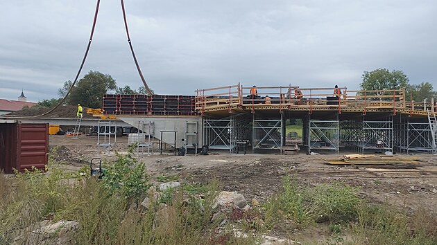 U Týniště nad Orlicí už jsou rozestavěné inundační mosty, přes které silnice záplavovým územím povede. (25. září 2025)