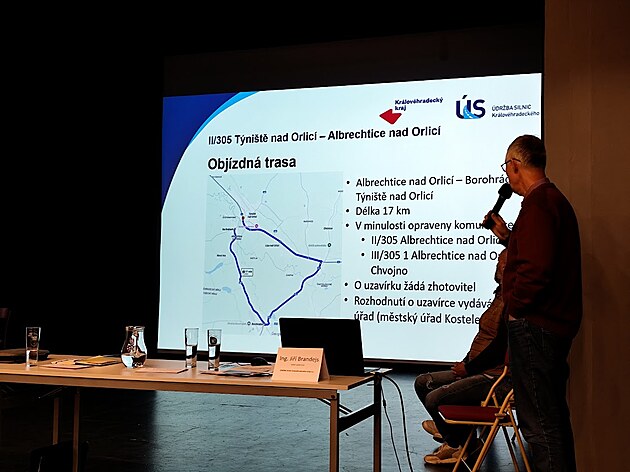 Schůzka s veřejností v Týništi nad Orlicí byla bouřlivá. Řešila se dvouletá přestavba klíčové spojnice do Albrechtic, kde jsou havarijní mosty přes Orlici a záplavovou louku. (24. února 2025)