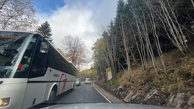 Pro sypače a autobusy je opravená silnice na Šerlich úzká