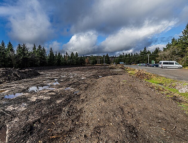 Vykácený pozemek stále čeká na povolení k rozšíření parkoviště na Šerlichu v Orlických horách. (7. 11. 2023)