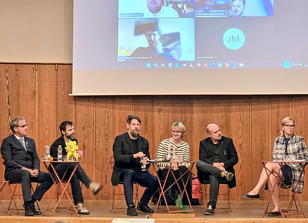 Účastníci veřejné debaty v přednáškovém sále Muzea východních Čech probírali, zda má Hradec Králové usilovat o pavilon z přehlídky Expo v Ósace. (23. září 2025)