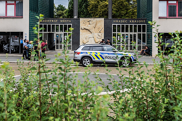 Policisté nařídili evakuovat levé křídlo hradeckého magistrátu kvůli nálezu možné munice. (3. července 2025)