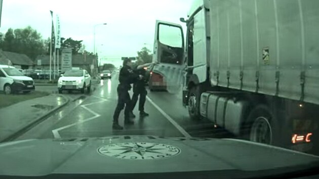 Kamion tak policistům ujížděl zhruba šest kilometrů. Poté, co zastavil v koloně, policisté najeli vedle něj, vyběhli z auta a namířenou pistolí řidiče donutili vystoupit. Akci zachytila policejní kamera.