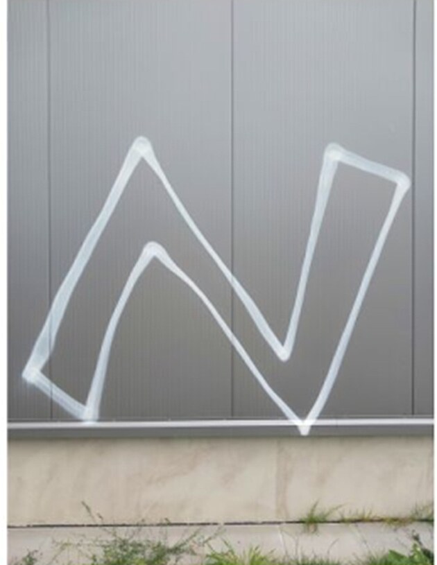 Posprejovaná stěna prodejny Möbelix v hradeckém Březhradu