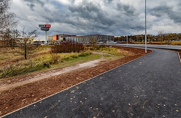 V obchodní zóně v Březhradě je téměř hotová silniční propojka. (20. listopadu 2024)