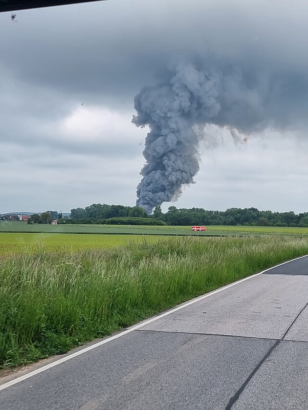 Požár haly v areálu drůbežárny v Kosičkách na Hradecku (20. května 2025)