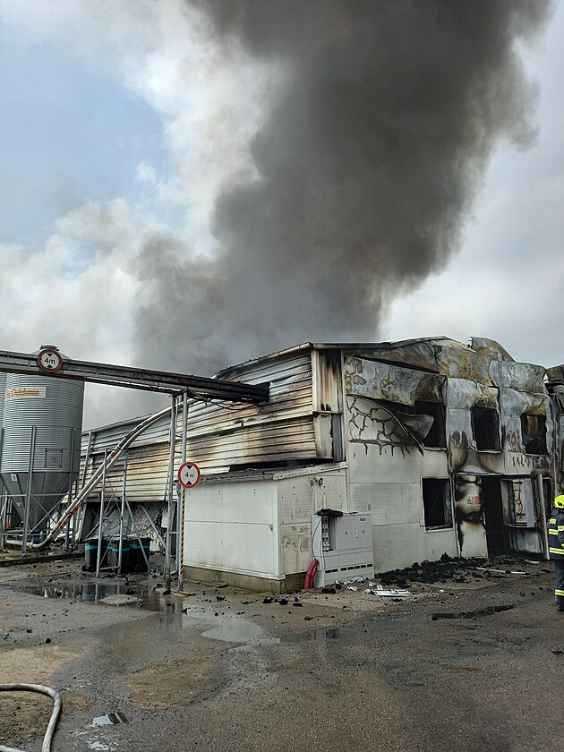 Požár haly v areálu drůbežárny v Kosičkách na Hradecku (20. května 2025)