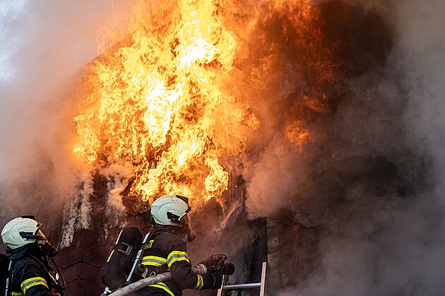 Shořel domek v jaroměřské ulici Na Brdcích. (4. března 2025)