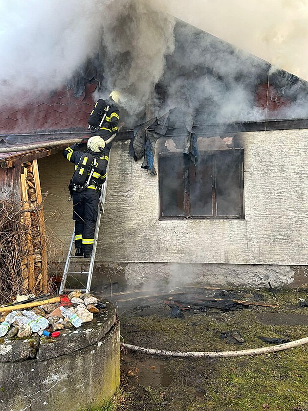 Požár domku v ulici Na Brdcích (4. března 2025)