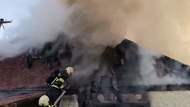 Hasiči hasí rodinný dům na předměstí Jaroměře