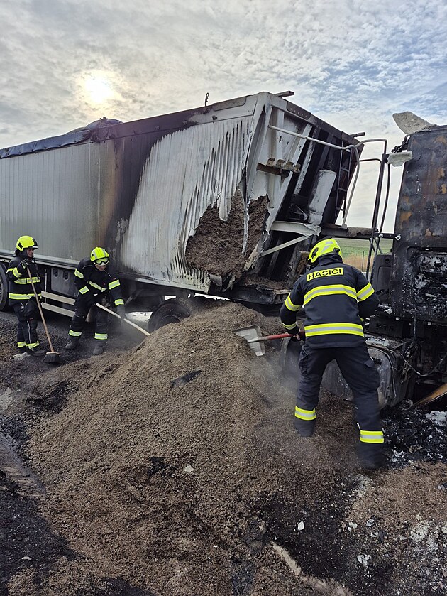 Shořelý kamion na D11 (14. října 2025)