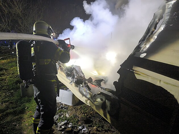 Požár mobilheimu ve Vysoké nad Labem (18. listopadu 2024)
