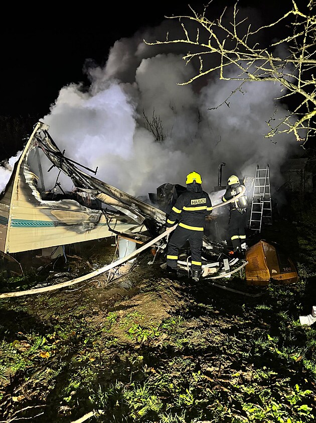 Požár mobilheimu ve Vysoké nad Labem (18. listopadu 2024)