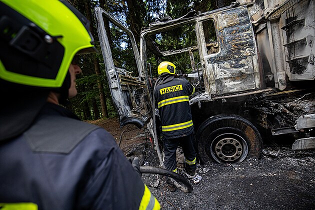 V sedle u Šerlichu hasiči zasahovali u požáru kamionu se štěpkou. (30. července 2025)