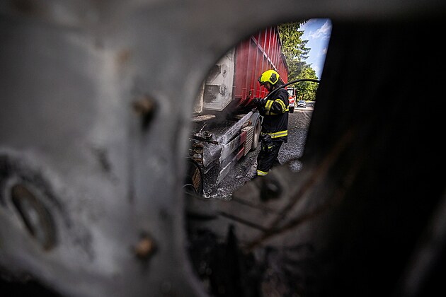 V sedle u Šerlichu hasiči zasahovali u požáru kamionu se štěpkou. (30. července 2025)