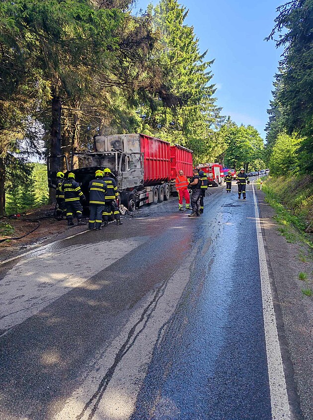 Požár kamionu poblíž Šerlichu (30. července 2025)