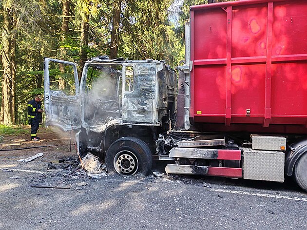 Požár kamionu poblíž Šerlichu (30. července 2025)