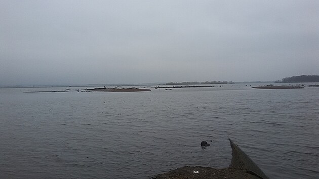 Usazeniny vystupují u Úpského přivaděče až nad hladinu Rozkoše. (prosinec 2021)