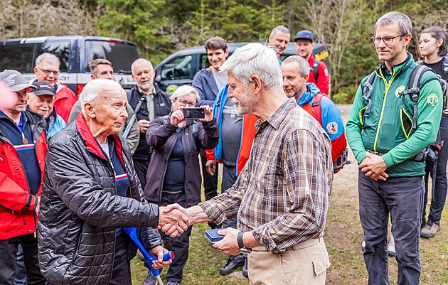 Prezident se sešel s veterány Horské služby Špindlerův Mlýn. Společně opékali klobásy. (23. dubna 2025)