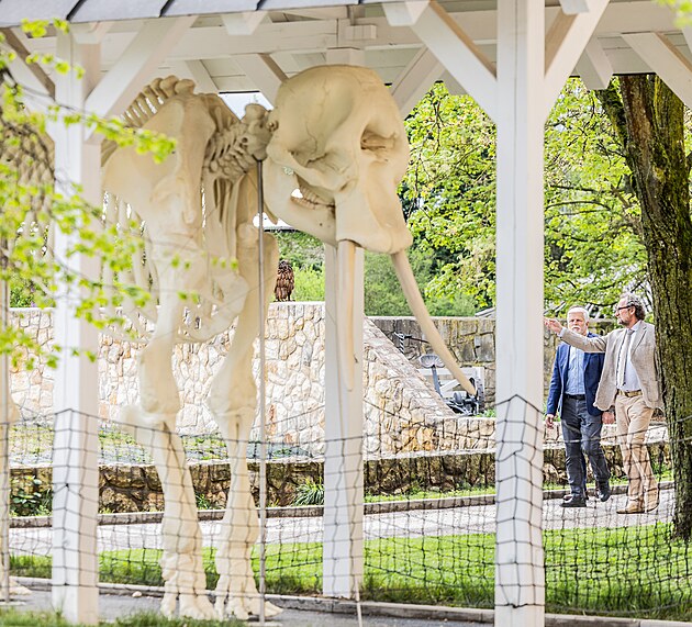 Ředitel a senátor Přemysl Rabas provází prezidenta Petra Pavla areálem dvorské zoo. (24. dubna 2025)