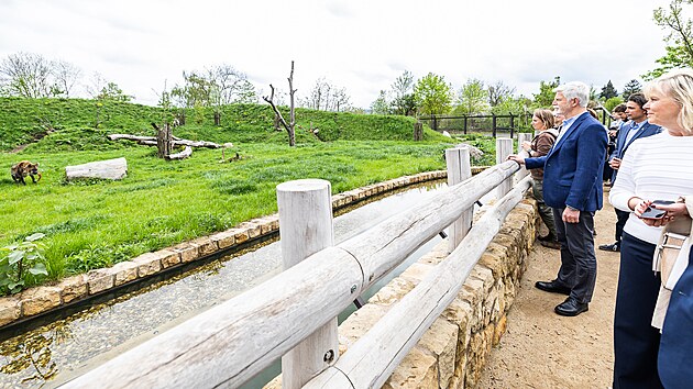 Prezidentský pár u výběhu hyen v dvorské zoo (24. dubna 2025)