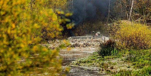 Sběratelé vojenské techniky rozjezdili tůně a cesty v Přírodní památce Na Plachtě v Hradci Králové. (25. října 2024)