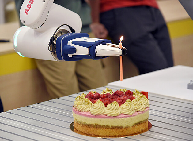 Robota naprogramovali, aby umisťoval svíčky na dort.