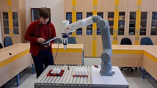 Gymnazisté naučili průmyslového robota míchat koktejly a zdobit dort