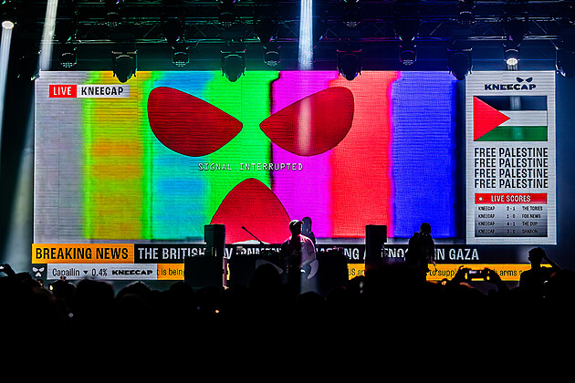 Vystoupení severoirské formace Kneecap na festivalu Rock for People. (11. června 2025)