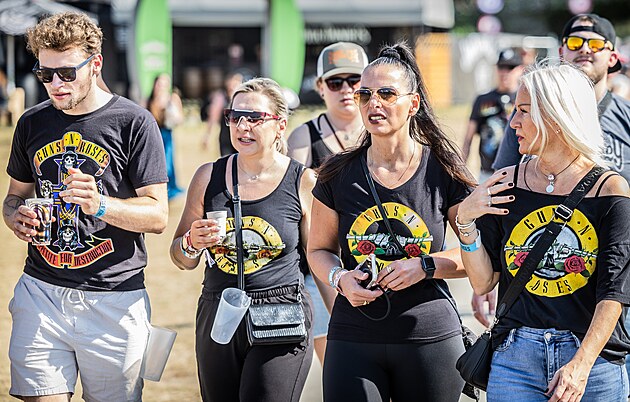 Fanoušci před koncertem Guns N’ Roses na hradeckém letišti (15. června 2025)