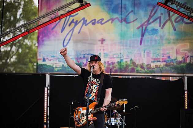 Frontman kapely Vypsaná Fixa Márdi na Majálesu Pardubice 2025. (17. května 2025)