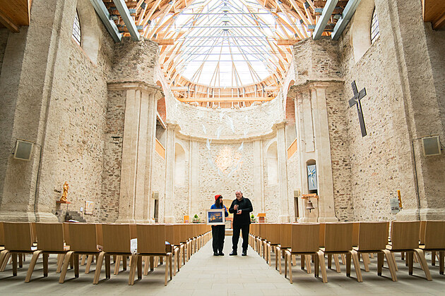 Leona Špačková a Josef Suchár v kostele v Neratově