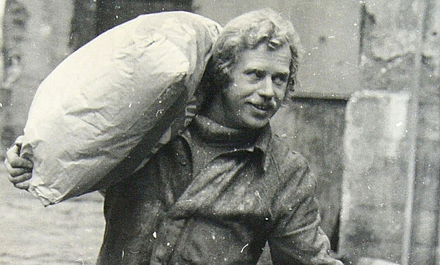 Havel si i po letech vybavil obsah papírového pytle, který má na snímku přehozený přes rameno.