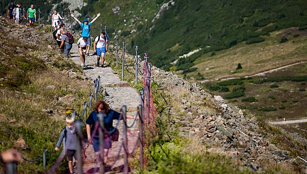 Sněžka zažila za slunného dne nápor turistů (13. srpna 2025).