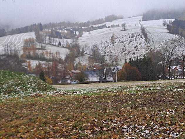 V Rokytnici nad Jizerou napadl sníh. (27. října 2025)