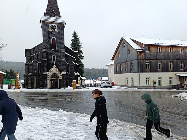 Sněžení na šumavské Kvildě. (27. října 2025)