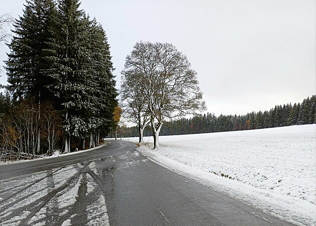 Sněžení na šumavské Kvildě. (27. října 2025)