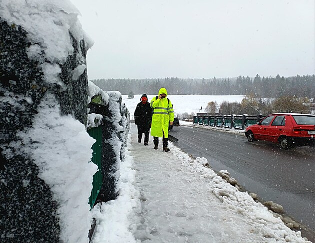 Sněžení na šumavské Kvildě. (27. října 2025)