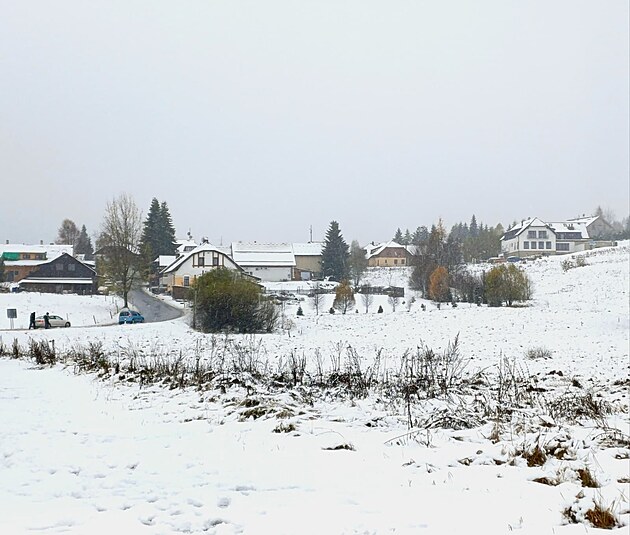 Sněžení na šumavské Kvildě. (27. října 2025)