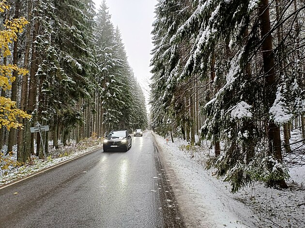 Sněžení na šumavské Kvildě. (27. října 2025)
