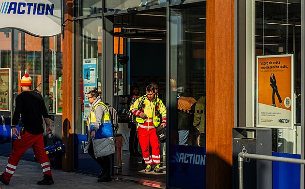 Policejní zásah v obchodní zóně v Hradci Králové, kde po útoku nožem zemřely dvě ženy. (20. února 2025)