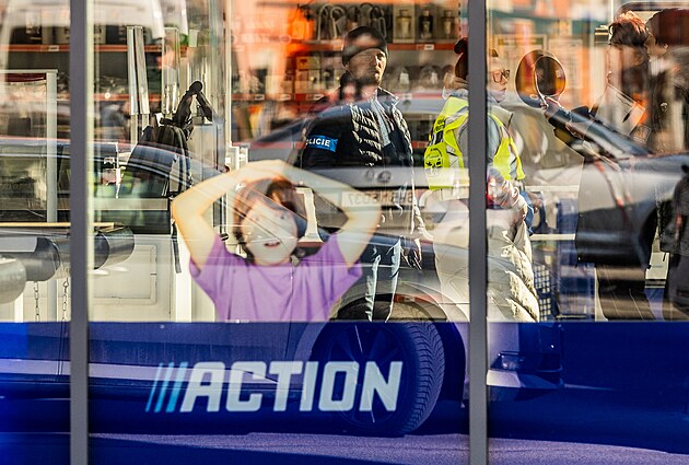 Policejní zásah v obchodní zóně v Hradci Králové, kde po útoku nožem zemřely dvě ženy. (20. února 2025)