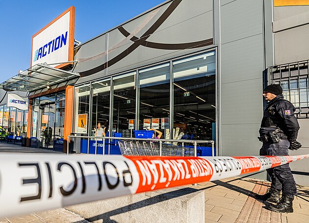Policejní zásah v obchodní zóně v Hradci Králové, kde po útoku nožem zemřely dvě ženy. (20. února 2025)